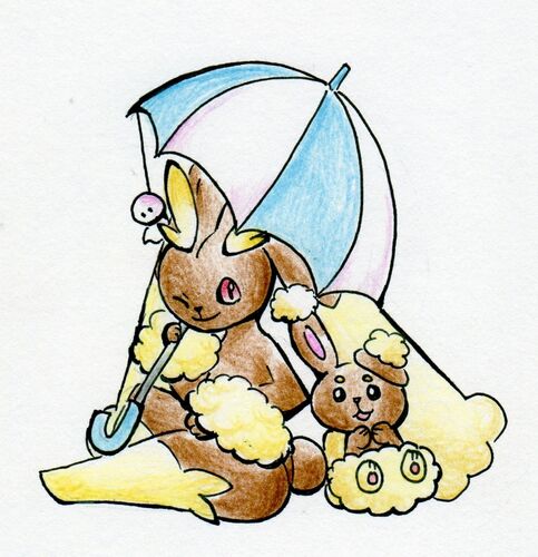 久々にミミロルとミミロップが描きたかったです。 傘のてるてる坊主はノリでつけました。