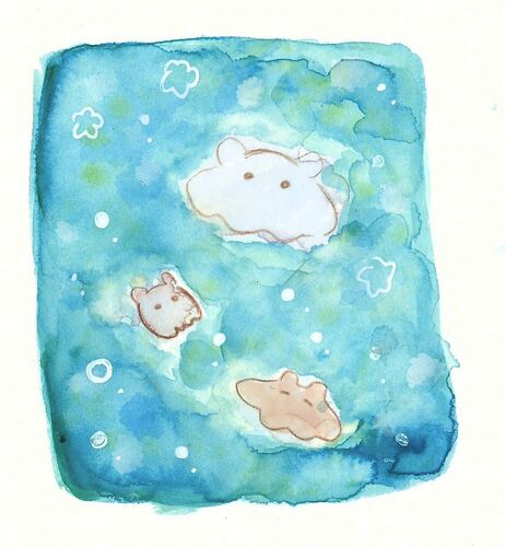 あと3日でクリスマスということもあり、サンタ帽を被ったメンダコとメンダコの赤ちゃんを描きました。