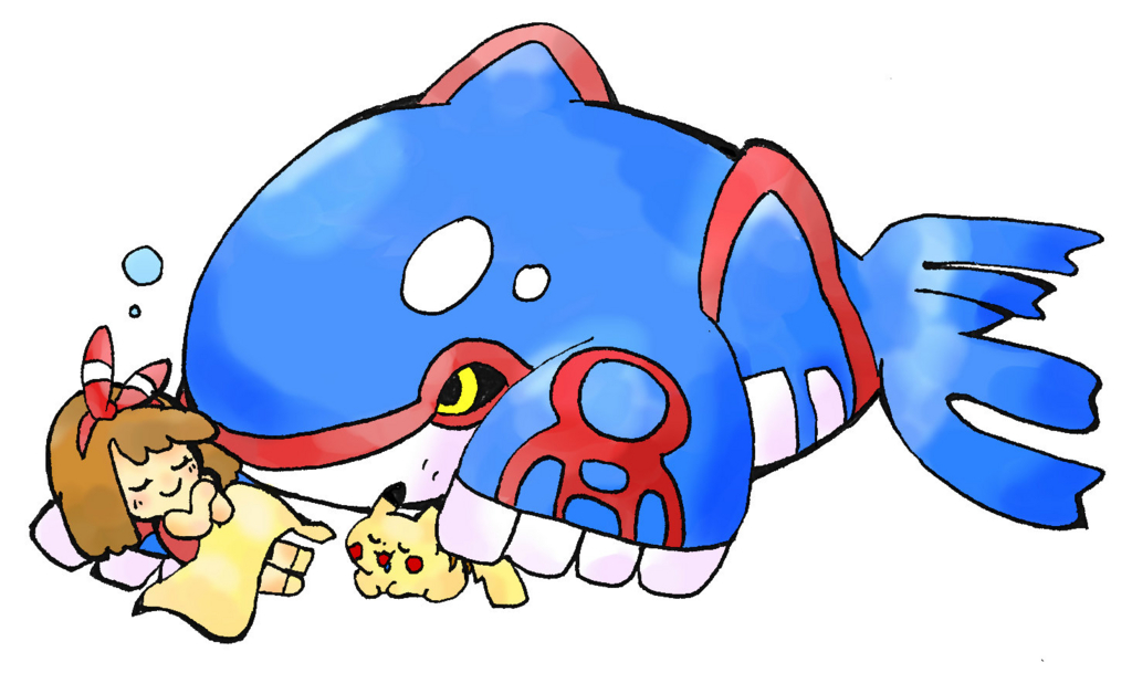 ペンタブを使ってポケモンを描こうと思ったらハルカとピカチュウを寝かせつけているカイオーガになりました。